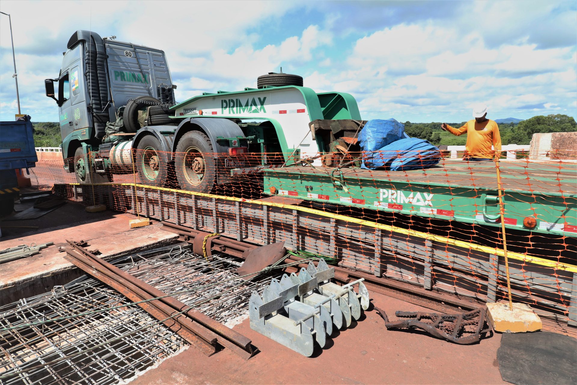 Medindo 13,8 metros de largura e 3,8 metros de comprimento, a plataforma serve de apoio para que os trabalhadores possam inserir as placas de aço, montar a caixaria para a concretagem que reforçará toda a estrutura, como explica o engenheiro civil Lauro Peres, um dos responsáveis pela obra na ponte.