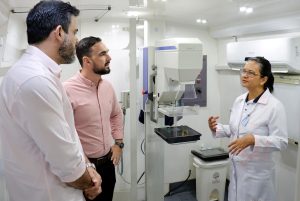 Em um dia marcado por gestos de cuidado e prevenção, o pátio da Secretaria de Estado de Infraestrutura e Logística (Seilog) recebeu, na terça-feira (14), pela primeira vez, o ônibus da saúde da Cassems, oferecendo exames gratuitos de mamografia e preventivo às servidoras da Seilog e da Agência Estadual de Gestão de Empreendimentos de Mato Grosso do Sul (Agesul). A ação integra o calendário do “Outubro Rosa” e reforça o compromisso do Governo do Estado com o bem-estar das mulheres que integram o quadro funcional das duas instituições.